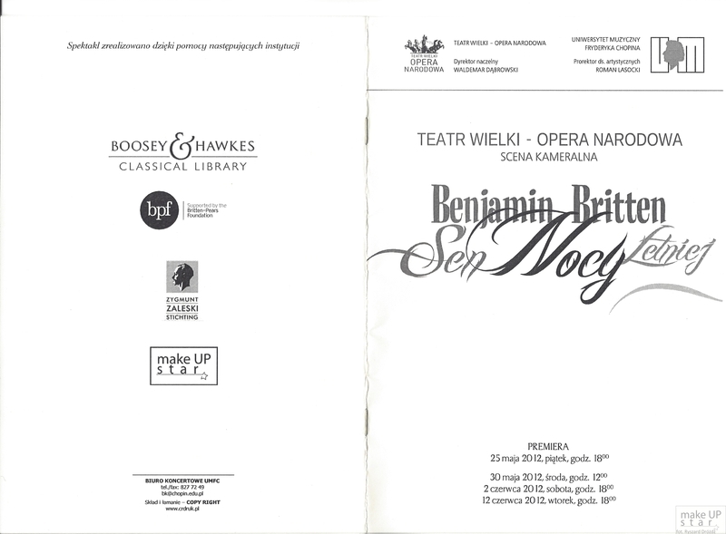 ► Podziękowania dla Teatru Narodowego - Opery Narodowej i Uniwersytetu Muzycznego Fryderyka Chopina oraz naszej instruktorki Elżbiety Tolak za możliwość odbycia wspaniałych i prestiżowych praktyk dla uczennic MAKE UP STAR. Podziękowania dla... aktorów za wspaniałą atmosferę pracy i życzliwość dla „szkolnego” fotografa" :) Za nami premiera spektaklu. Przed nami następne przedstawienia i wyzwania dla kolejnych uczennic. Nazwiska wszystkich wizażystek-charakteryzatorek umieszczone zostały w programie (patrz zdjęcie).